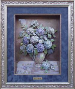 シャドーボックス作品は、「紙」に「カット・丸め」という技法の組み合わせによって、平面では表現できない豊かな立体感を創り出しています。立体絵画の奥深いさと、一枚の紙に丁寧なこだわりや情熱が強く感じられました。
