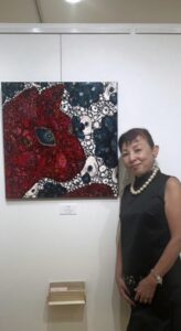 約15年かけて絵画制作に情熱を注ぎ、二科会を中心にグループ展で作品を発表されているアーティスト・水谷 奈穂子さん。色彩豊かな点描表現と多彩な素材使いを特徴とし、アクリル絵の具やマーカー、金箔、マニキュア、艶出しスプレーなどを用い、こだわった作品を創作しています。