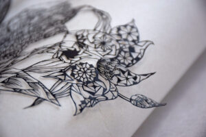芳さんは岡山を拠点に、きり絵という繊細な技法を用いて制作活動を続けているアーティストです。創作歴は3年ほどですが、作品一つひとつに強いこだわりと温かい気持ちが込められています。