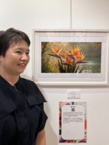 本作は、極楽鳥花(バード・オブ・パラダイス)から着想を得ています。鮮やかなオレンジ色で羽を広げる鳥の姿を思わせる花には、困難を乗り越えた先で、人生を祝う象徴としての想いが込められています。北野武監督の映画『3-4X10月』の印象的なシーンに登場する沖縄の花とも重ね、病を超えて元気を取り戻した時にこの花と宴を開きたい、そんな願いを込めた作品です。制作にはAIを使いながらも即完成ではなく、繰り返し修正を行い、厳選した一枚を完成形として発表しました。